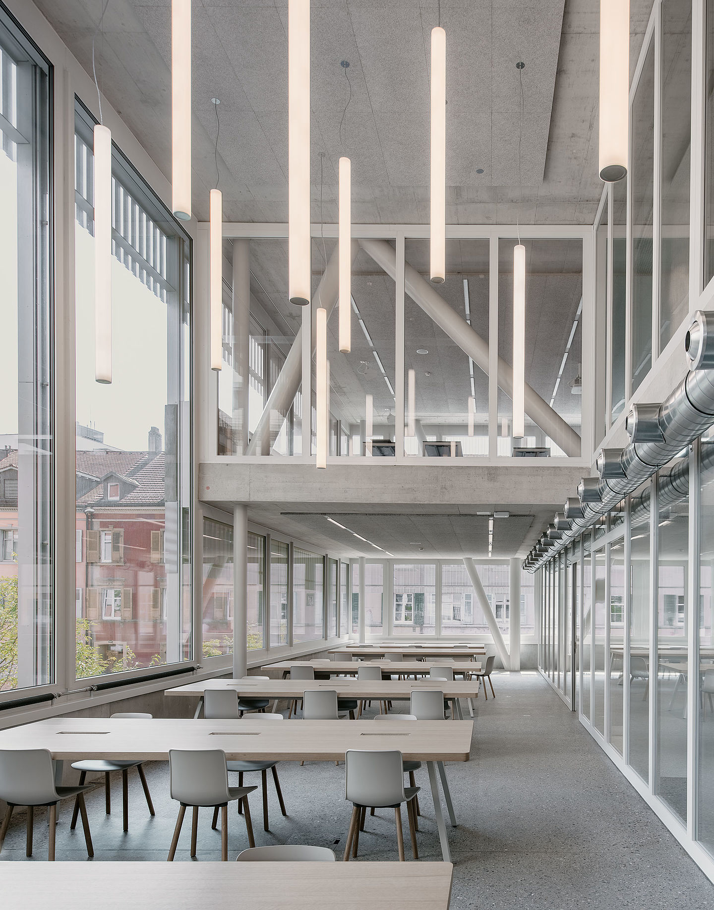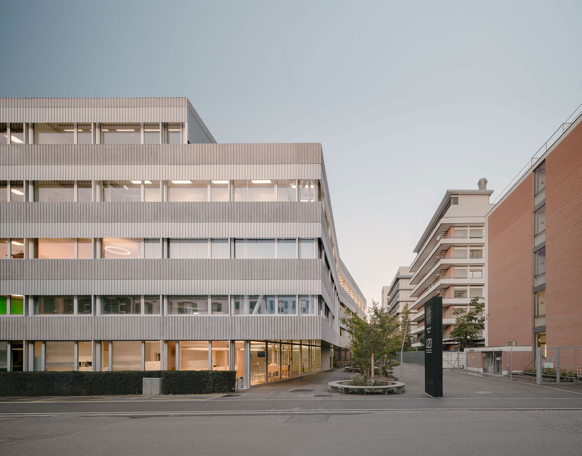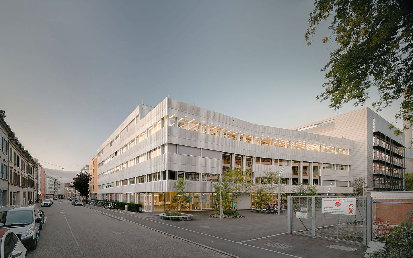 Das Areal befindet sich in einer Übergangszone zwischen Blockrandbebauung und Solitärbauten der chemischen Industrie. Ein flaches Volumen folgt den gegebenen Baulinien und Grenzabstände und besetzt einen grossen Teil des Perimeters. Der pragmatisch städtebaulichen Logik folgt eine räumliche Verschränkung der vorhandenen Strassengeometrie, die in einfacher Weise eine markante Volumetrie erzeugt und dem neuen Campus Rosental eine klare repräsentative Adresse verschafft.